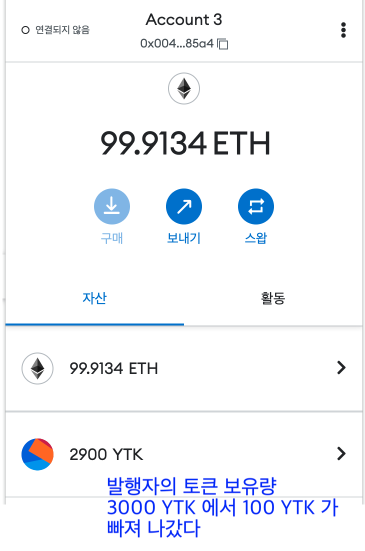 이 Account3이 토큰 발행자가 되어 3000 YTK 를 다 가져갔다.