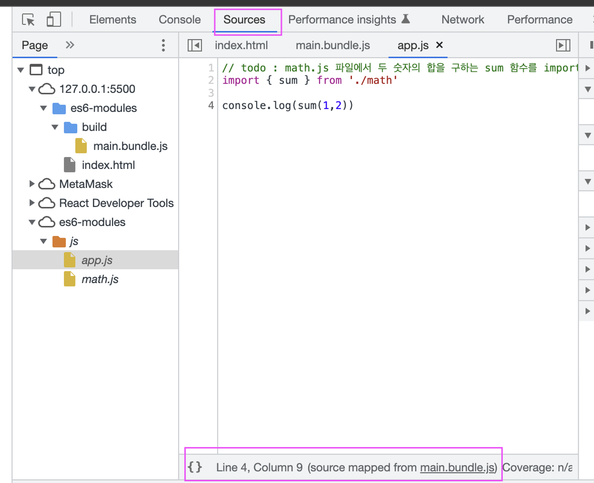- 보통 production 모드로 빌드를 할 경우 번들 파일이 난독화되서 나오는데, 이 때 실제 번들 전의 오리지날 파일 상의 코드와 번들링된 파일을 맵핑해주는 도구를 설정해준다.