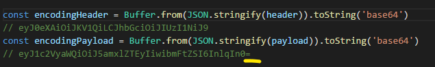 왜냐하면 header와 payload 둘 다 객체형태라 buffer.from의 인자로 들어갈 수 없다.