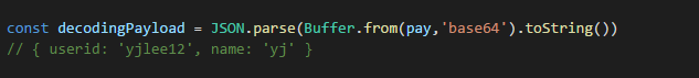 header,payload,signature가 각각 . 으로 구분되어있으므로 이걸 split시켜준다. (구조분해할당 이용)