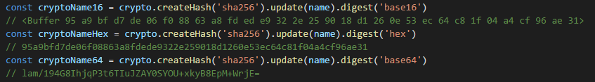 createHash() : 사용할 알고리즘을 인자로 넣어준다. sha256, sha512 등..