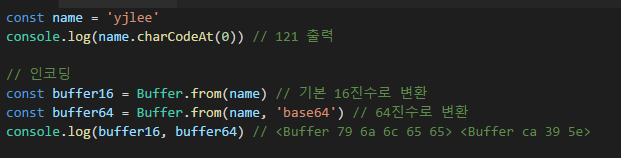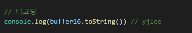 Buffer.from(변환할 데이터) : 아무 옵션 인자를 넣지 않으면 기본적으로 16진수로 변환해준다.